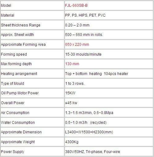 Parâmetros da Máquina Automática copo plástico termoformagem